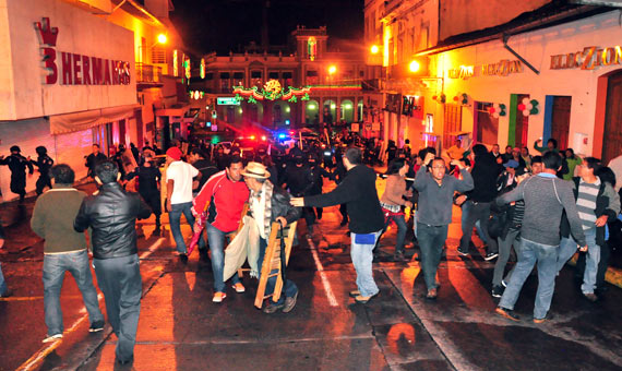 Hay videos en Youtube donde se ve a los policías estatales llegar en camionetas pinck up que se alinean metros antes de la explanada y como en los viejos tiempos, de la década de los setentas, se forman y avanzan para dejar caer todo el peso de sus toletes y bastones eléctricos, sobre sus cuerpos.