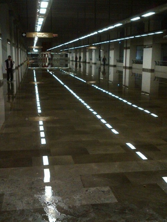 De acuerdo con imágenes difundidas a través de las redes sociales el agua se acumuló principalmente en los pasillos y en las taquillas de la estación.