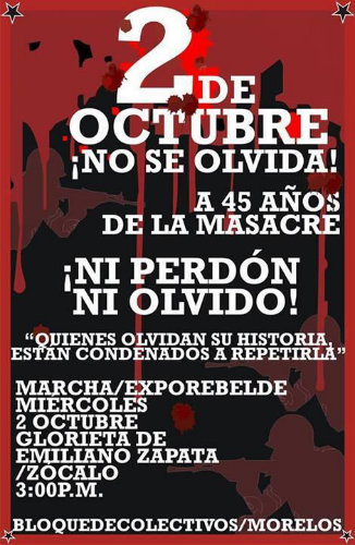 Ciudad de México, 2 de octubre (SinEmbargo/Agencias).– La conmemoración del 45 aniversario de la matanza de Tlatelolco, en la que murieron un número indeterminado de estudiantes, ha congregado a estudiantes, activistas, ciudadanos, organizaciones sindicales en al menos siete estados del país.