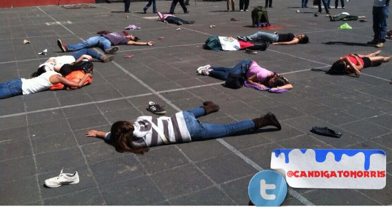 En el centro de Xalapa, en Veracruz, así lució la marcha por el 45 aniversario de la matanza de Tlatelolco (Foto Twitter @CandiGatoMorris)