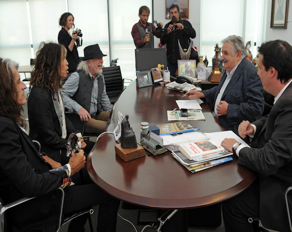 Más temprano la presidencia de Uruguay divulgó un video de la entrevista que Mujica le concedió a los integrantes de Aerosmith, este martes, y en el cual se recogen declaraciones del vocalista Steve Tyler quien dijo que Mujica es un "poderoso" ejemplo. "Más presidentes deberían ser como él", agregó.