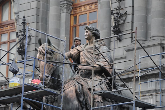 Ciudad de México, 10 de octubre (SinEmbargo).– El encargado de la restauración a la estatua ecuestre de "El Caballito", Arturo Javier Marina Othón, se declaró ajeno a las afectaciones que, de acuerdo a un dictamen del Instituto Nacional de Antropología e Historia (INAH), dañaron en 50% la superficie del monumento y que representan la pérdida irreversible de la pátina original de la escultura, derivada del uso de ácido nítrico al 30 por ciento.