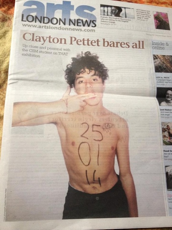 Así, la idea de Clayton Petteet, de 19 años de edad, es perder la virginidad en público, en una galería de arte en Londres, como parte de un examen para la escuela de arte donde estudia, la Central Saint Martins, publicó el diario español ABC.