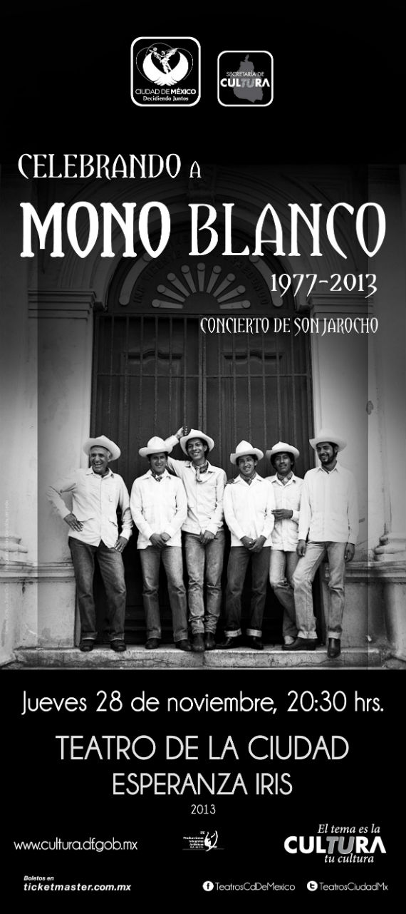 En el marco de una conferencia de prensa llevada a cabo en el Centro Histórico, el grupo anunció su próximo concierto en el Teatro de la Ciudad Esperanza Iris, con el título Celebrando a Mono Blanco 1977-2013, festejando así 36 años de labor ininterrumpida con la convocatoria a todos los músicos que en diferentes periodos formaron parte del conjunto.