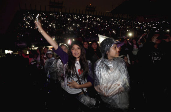 México, 19 Nov. (Notimex).- La espera terminó para las "Beliebers" cuando Justin Bieber apareció en el escenario del Foro Sol vestido totalmente de blanco, para iniciar con "All around the world" su primera presentación de dos en este recinto, ante un poco más de 52 mil fans, según cifras de los organizadores.
