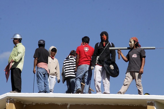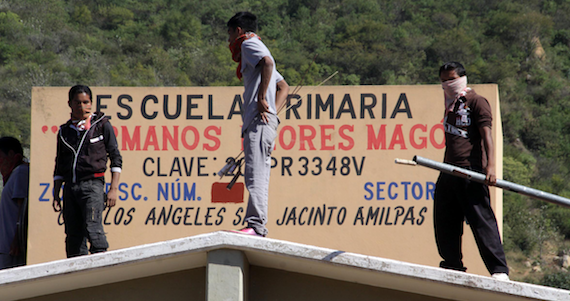 Reportes de prensa indican que a bordo de siete camiones del transporte público que retuvieron y tres camionetas los profesores de la CNTE se dirigieron a recuperar las escuelas que, afirman, les fueron quitadas.
