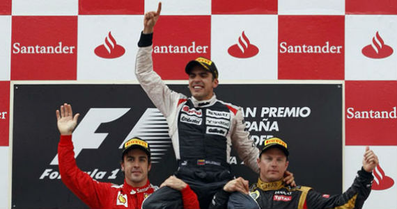 Tan pronto como cruzó la meta, el candidato presidencial se unió a las felicitaciones vía Twitter: “Grande Maldonado! Felicitaciones para Pastor, para Aragua y para toda nuestra Venezuela con este primer triunfo en F1, Arriba Venezuela”. Una gran parte de un país se entregó al júbilo provocado por un hombre a más de 250 km/hr. En tierras catalanas, Maldonado alzó firme sus brazos mientras los ingenieros de la Williams corrían desde el paddock hacia la pista para celebrar su primera victoria en siete años. Detrás, un Fernando Alonso se lamentaba a pesar de haber mostrado un avance.