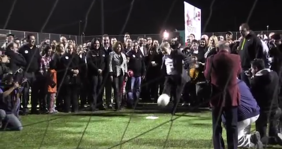 Incluso, minutos antes se puede apreciar como el gobernador panista señala varias veces a la portería con medida de 7 metros y medio por 2 metros con 44 centímetros, pero al parecer la anotación no le salió como lo previó.