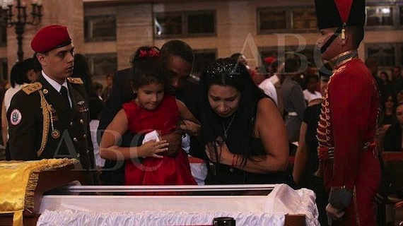- Nidia Fajardo y su hija, ante los restos de Chávez: Foto: ABC.
