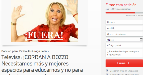 También se pidió en change,org que Televisa corriera a su conductora Laura Bozzo y la disminución del 50 por ciento de los salarios de legisladores, funcionarios públicos y del Presidente, además de reducir el gasto en publicidad gubernamental, pero ambas exigencias siguen sin conseguir su objetivo.