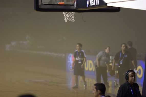 El humo interrumpió el calentamiento de los Timberwolves, debido a que la cancha poco a poco se fue llenando. La organización pidió a las personas que se encontraban en el lugar (la mayoría prensa) a salir del inmueble.