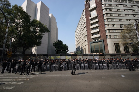 Las vallas metálicas fueron reinstaladas por los uniformados y se reforzó el cerco de seguridad en la zona. Mientras tanto la circulación en ambos sentidos de Paseo de la Reforma quedó suspendida, al igual que en el cruce de esa vía con la Avenida de los Insurgentes.