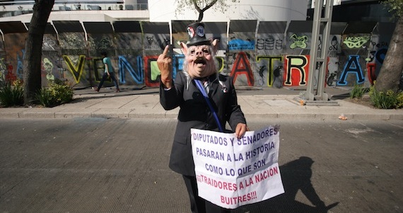 A pesar de los llamados de Morena a manifestarse pacíficamente, por la tarde miembros de la Coordinadora Nacional de Trabajadores de la Educación (CNTE) derribaron vallas de alta resistencia que resguardan al Senado después de que las golpearan con palos y piedras.