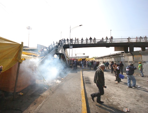 Minutos después lanzaron gas lacrimógeno, mismo que afectó a simpatizantes de Morena. Sin embargo, se desconoce desde dónde llegó y quién lo hizo.