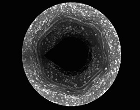 El fenómeno del tamaño de cuatro Tierras que presenta un remolino en su interior, no tiene comparación con otros fenómenos en el Sistema Solar. "El hexágono es sólo una corriente de aire, y otros fenómenos con características climáticas similares en el presente son muy turbulentos e inestables", dijo Andrew Ingersoll, miembro del equipo de imágenes de Cassini en el Instituto de Tecnología de California en Pasadena.