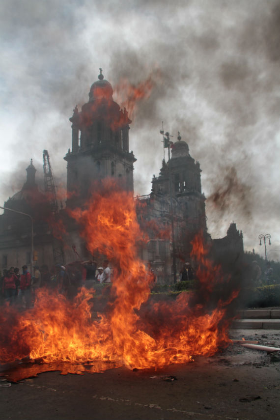 En inconformidad con los resultados del primer año del mandatario priista, miles se congregaron en el Ángel de la Independencia para marchar hacia el Zócalo. Transcurrió tranquilamente, aunque después se unió un contingente de los llamados "anarquistas" que iban encapuchados.