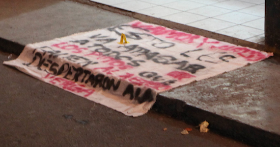 Los delincuentes salieron de la tienda y extendieron en la banqueta una manta en la que amenazan a más personas, pero no especifican el motivo.