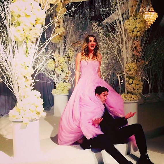 Cuoco se mostró este miércoles en Instagram con su vestido de boda rosado, besando a su esposo. Allí añadió "Yep", colocó una carita sonriente y describió a la fotografía como "thesweetings".