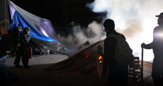 La tarde de este domingo 400 granaderos desalojaron el plantón que maestros de la CNTE mantenían en el Monumento a la Revolución.