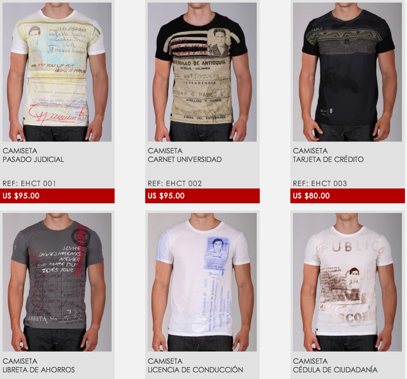 En 2012, el hombre de 36 años fundó "Escobar Henao", la marca con la que fabrica playeras estampadas con documentos que alguna vez identificaron a Escobar, abatido en Medellín en diciembre de 1993.