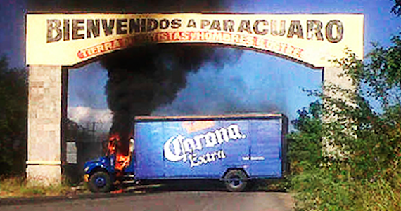 Los bloqueos en los accesos a Parácuaro continuaron. Supuestos habitantes del municipio prendieron fuego a dos camiones y una camioneta en demanda del retiro de los grupos de autodefensa que tomaron el control de la localidad.