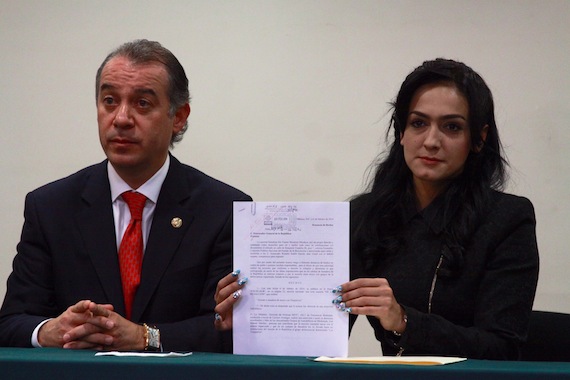 Más tarde, el Coordinador del Sol Azteca, Miguel Barbosa Huerta, y el presidente del Senado, el priista Raúl Cervantes, acompañaron a la legisladora ante la PGR para presentar una denuncia.