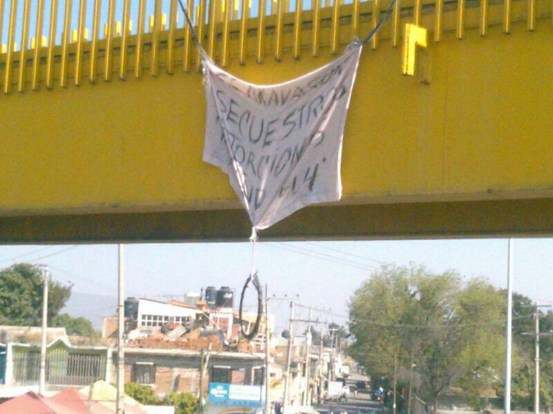 Una tercera manta fue localizada en el puente de la comunidad de Malvas y retirada por los elmentos de las fuerzas de seguridad pública estatales. Dichas mantas serán puestas a disposición del ministerio público federal debido a que se encontraban dentro del perímetro de las vías federales.