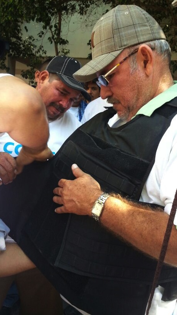 El primero de los autodefensas en ingresar a la capital fue el líder del grupo de La Ruana, Hipólito Mora, en compañía de unos 50 hombres desarmados, quienes arribaron a la catedral de Apatzingán a rezar y para reunirse con el “Padre Goyo”.