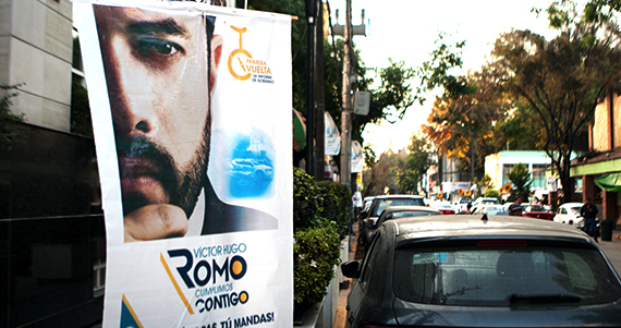 Navarro dice que en el DF es posible ver espectaculares en el segundo piso del Periférico de legisladores locales del Partido de la Revolución Democrática (PRD) que promueven sus informes, pero lo que sobresale es su cara.