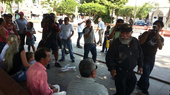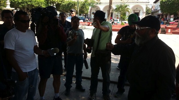 Posteriormente salió a la plaza donde la gente lo recibió con aplausos e indicó que el de las autodefensas es un movimiento tan grande e importante como el revolucionario de 1910.