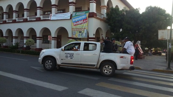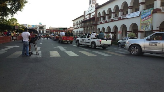 Los autodefensas tomaron la cabecera municipal y dieron un par de vueltas a la Plaza de los Constituyentes, en el corazón de la ciudad, justo enfrente del Palacio Municipal.