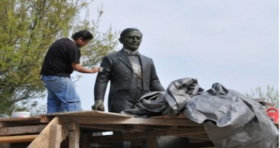 Un restaurador de antigüedades, Francisco Mejía Chávez, aplicó varios químicos sobre la pintura que se le colocó a la estatua del Benemérito de las Américas en San Nicolás, que había ocasionado que el rostro y las manos de la figura quedaran de color verde.