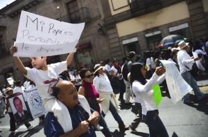 Morelia, Michoacán a 23 de febrero del 2013.-Alrededor de 200 periodistas michoacanos marcharon por la avenida Madero para repudiar los asesinatos y desapariciones cometidos en México en la última década. Lo anterior en el marco de movilizaciones similares efectuadas en diferentes puntos del país a convocatoria de reporteros de Veracruz, luego del asesinato de Gregorio Jiménez de la Cruz. Foto Alan Ortega