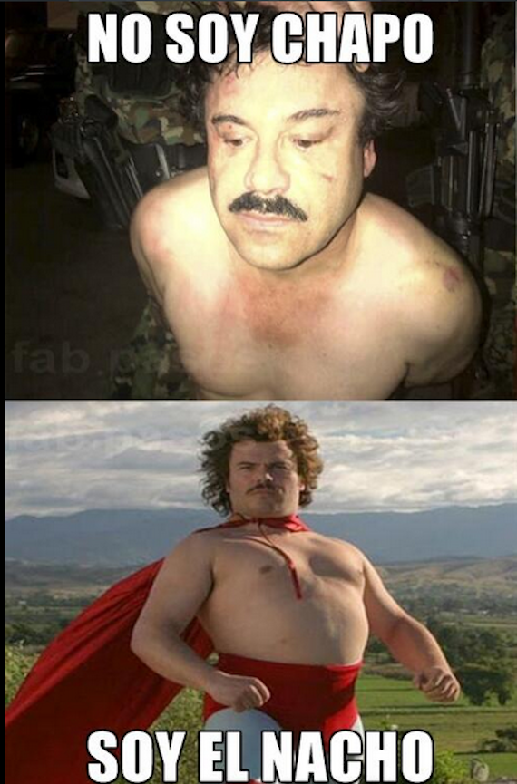 Uno de los "memes" más compartidos fue el cuestionamiento de las fotografías actuales que mostraron las autoridades de Guzmán Loera, por lo que los usuarios compararon su similitud con la del personaje de Jack Black en la película "Nacho Libre".