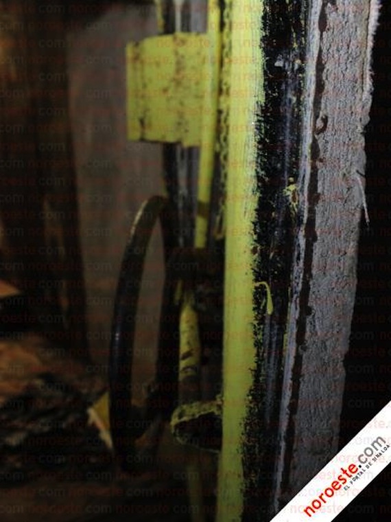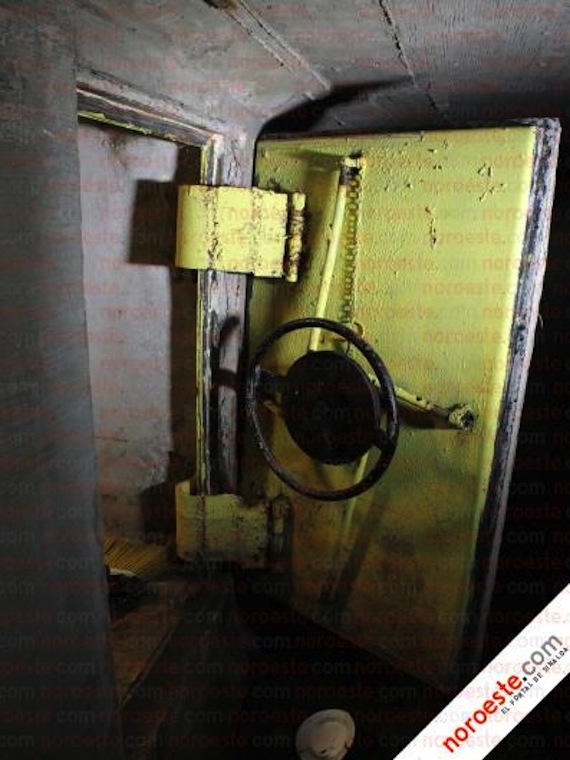 Para entrar a la casa de la colonia Libertad por el drenaje, hay una puerta metálica con una escotilla por la parte interior y cubierta con madera por fuera. Hacia dentro, hay un túnel de aproximadamente 1.80 metros de alto por 1.50 de ancho, con las paredes cubiertas con tablas.