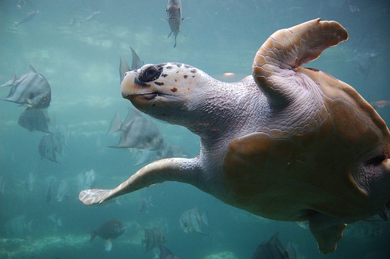 Con una cabeza relativamente grande en comparación al cuerpo, este quelonio es una de las tortugas marinas de mayor tamaño. Los adultos miden de 72.9 cm a 1.04 m y su peso oscila entre los 65.7 y 107 kilos.