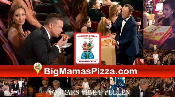 En Big Mama's & Papa's sabían que los Oscar habían hecho un pedido, pero el encargo consistía en llevar las pizzas hasta el teatro. Nadie les advirtió de que formarían parte del espectáculo.