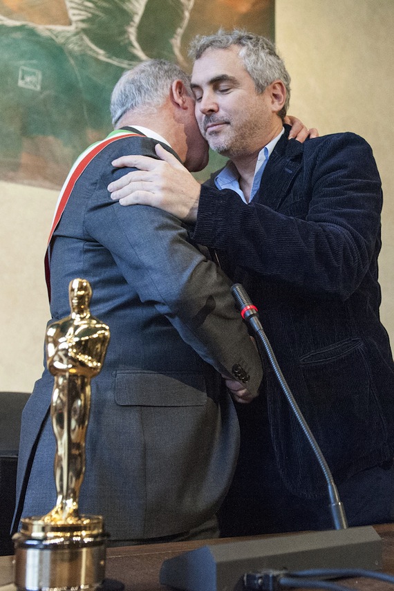 Recibido con entusiasmo por habitantes y autoridades de la localidad italiana, que le concederá la ciudadanía honoraria, Cuarón no paró de repartir autógrafos, ni de dejarse fotografiar al lado de sus admiradores.