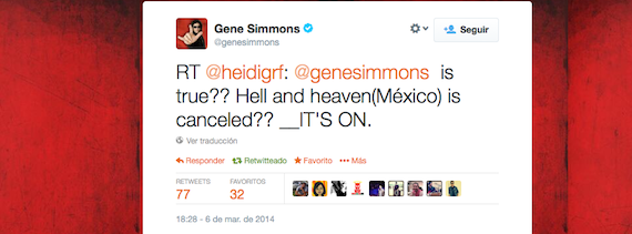 Asimismo, durante toda la tarde permaneció la duda entre varios usuarios de las redes sociales sobre la confirmación de la noticia, por lo que incluso el vocalista de la banda Kiss, Gene Simmons afirmó vía Twitter que seguía en pie.