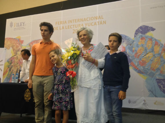 A su tiempo, siempre “vigilada” por el ojo atento de los tres nietos, hijos de su hija Paula Haro, que viven en Mérida y por su hijo menor Felipe, Elena Poniatowska leyó un emotivo discurso en homenaje a su amigo.