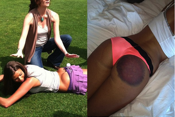 ¿Qué consigues cuando fallas un tiro de golf sobre el trasero de una modelo? Probablemente una demanda.