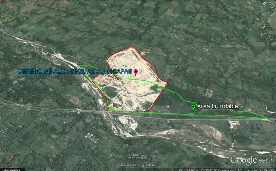 No obstante, el Cefereso fue construido sobre la cuenca del Rio Vado Ancho, una zona que en 2005, tras el paso del Huracán Stan, quedó completamente anegada. Además, es una región con alta probabilidad de que se vuelvan a presentar este tipo de contingencias climatológicas.