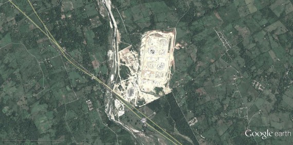 En una imagen de satélite, se observa la zona de construcción situada sobre terrenos de inundación recurrente, porque se encuentra al lado del Río Vado Ancho, el cual, como su nombre lo indica se inunda constantemente.
