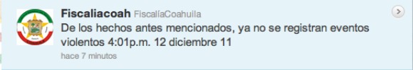 Según @Fiscaliacoah, a las 16:01 ya no se reportaban hechos violentos en la zona.
