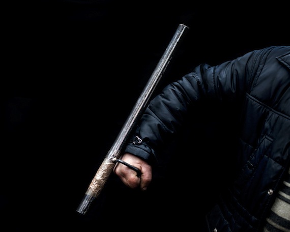 Las arrmas de los manifestantes ucranianos tienen una apariencia primitiva, pero no dejan de ser amenazantes. Foto: Tom Jamieson