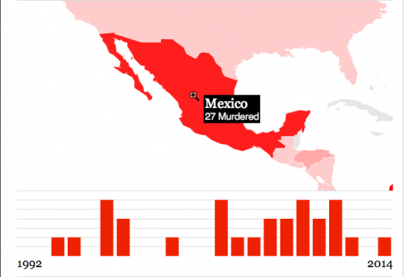 En los tres primeros tres meses del 2014, sólo cuatro países han presentado casos de asesinato en todo el mundo, entre ellos se destaca el homicidio de Gregorio Jiménez de la Cruz, el periodista veracruzano muerto entre el 5 y 11 de febrero.