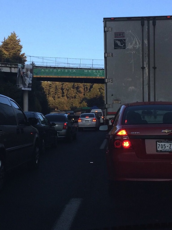 Los vehículos que van rumbo a Toluca se encuentran con serias afectaciones viales, debido a la granizada del día de ayer que paralizó la carretera México-Toluca. Por lo tanto el caos vial inicia desde Prolongación Paseo de la Reforma, desde Constituyentes hasta la México-Toluca. Por lo anterior la policía capitalina pide evitar la zona. Tuiteros indican que el recorrido de Santa Fé a la caseta de La Marquesa les ha llevado hasta cuatro horas.
