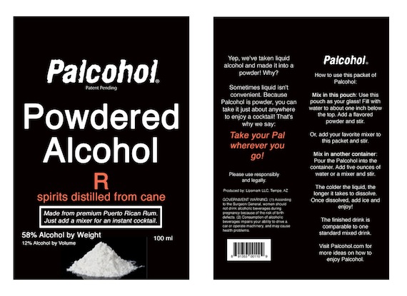 Se trata del "Palcohol", el cual transforma un trago de vodka o ron en un paquete de polvo de bolsillo. Sólo requiere un poco de agua y mezclar para obtener licor fuerte. Para empezar, la compañía tiene previsto realizar varias presentaciones como margarita, mojito, cosmopolitan y sabores a limón, las cuales fueron autorizadas la semana pasada por la Agencia de Impuestos y Comercio de Alcohol y Tabaco (TTB, por sus siglas en inglés).