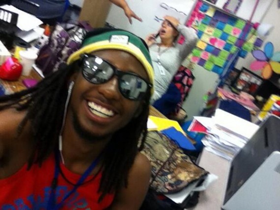 El estudiante que se tomó esta foto junto a su maestra (que estaba en labor de parto) demuestra que cualquier escenario es perfecto para tu selfie mientras salgas sonriendo.