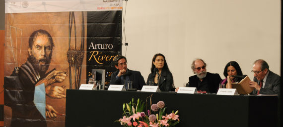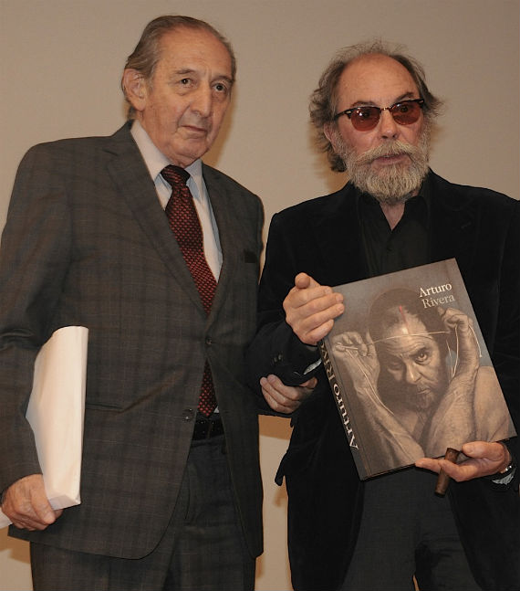 Arturo Rivera, pintor nacido en 1945, “ha producido un prodigioso torrente aterrador de admirable belleza y perfección; pienso y piensa mucha gente, que es el mayor pintor de su generación; él mismo ha dicho que muchos de sus cuadros aterran, que asustan a los conservadores que se resisten, algunos de ellos, aunque sean notables e interesados personajes que adquieren cuadros para montar en los muros de las habitaciones que habitan”, dijo el poeta Eduardo Lizalde, su gran amigo, en la presentación.